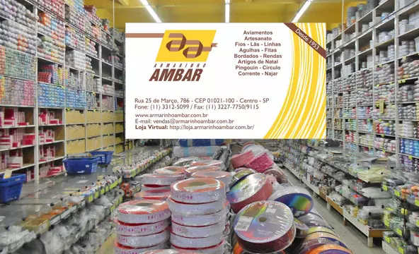 A história da família Ambar no Brasil começa com o desembarque do nosso amado patriarca Georges Ambar e sua esposa. Logo que chegou a São Paulo, começou sua vida de vendedor, morando na Capital e vendendo armarinhos pelo Interior do Estado em 1945. Depois de quatro anos, aventurando-se por diversas cidades desse nosso Brasil, ele conseguiu estabelecer-se em uma pequena loja, onde, por nove anos, lutou tentando se firmar no comércio da região da 25 de Março. Cansado de enfrentar problemas de enchentes do córrego do Anhangabaú e adversidades com a concorrência, mudou-se para Rua Cavaleiro Basílio Jaffet, endereço que serviu como trampolim para, finalmente, chegar à Rua 25 de Março. A partir daí, o Armarinho Ambar começou a ocupar um lugar de destaque entre as principais empresas da região, atendendo a várias indústrias e, principalmente, ao comércio nacional e de outros países. Essa preferência deu-se graças ao baixo preço praticado e a seu grande estoque. O ramo de armarinho é extenso, pois todo tipo de mercadoria se encaixa nele. Com isso, muitas vezes, nós, do Ambar, aventuramo-nos por outros mercados, sem deixar nossa especialidade. Como o comércio é dinâmico, ao longo desses cinqüenta anos, fizemos nossas experiências no setor de confecções, meias, brinquedos, papelaria e enfeites. Após a abertura de mercado, houve uma diversificação muito grande de produtos estrangeiros e o comércio local foi se adaptando à nova realidade e acrescentando produtos novos, o que acabou por desfigurar as lojas de armarinho. Percebendo essa debandada, resolvemos convictamente permanecer fiéis ao ramo, procurando atender aos consumidores típicos como confeccionistas, revendedores, costureiras, além de pessoas que se dedicam aos trabalhos manuais como tricot, crochê, bordado, artesanato, bricolagem, entre outros, que complementam o orçamento do pequeno empresário brasileiro. Seguimos com a nossa tradição e, graças à pujança e versatilidade da 25 de Março, conseguimos, na contramão das previsões, sobrepor-nos às adversidades de uma economia instável, marcando nossa presença com um crescimento sólido. Temos condições de servir tanto indústrias de confecções, com nossa linha de aviamentos, como suprir lojas de armarinhos e artesanato, revendedores, donas de casa e outros. Por isso, somos armarinho e assim, lembre-se: Armarinho Ambar, dando forma a sua criatividade.