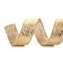 A cor ouro e o acabamento trabalhado tornam a Fita Cromus 1073631 3,8Cm Trab Ou 9M uma escolha certeira para a decoração natalina, seja em guirlandas, árvores ou embalagens personalizadas.